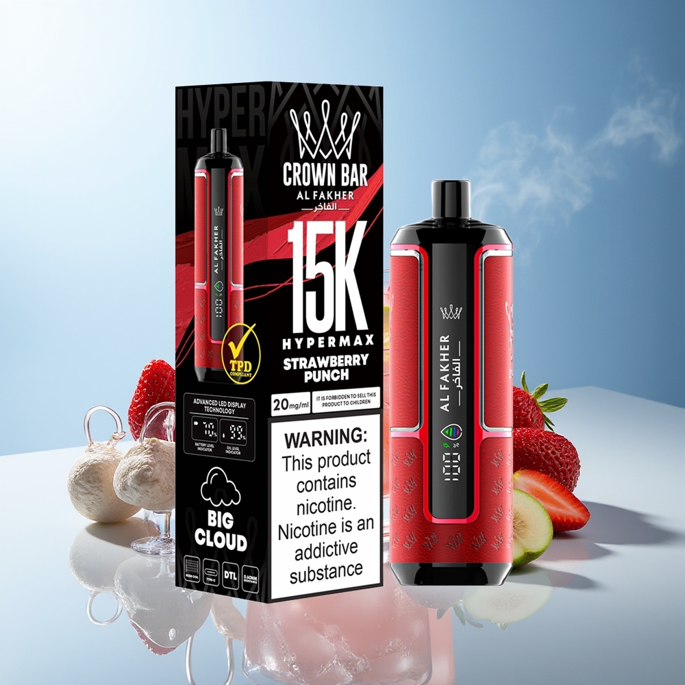 Al Fakher Crown Bar 15K Hypermax Disposable Vape Kit Strawberry Punch