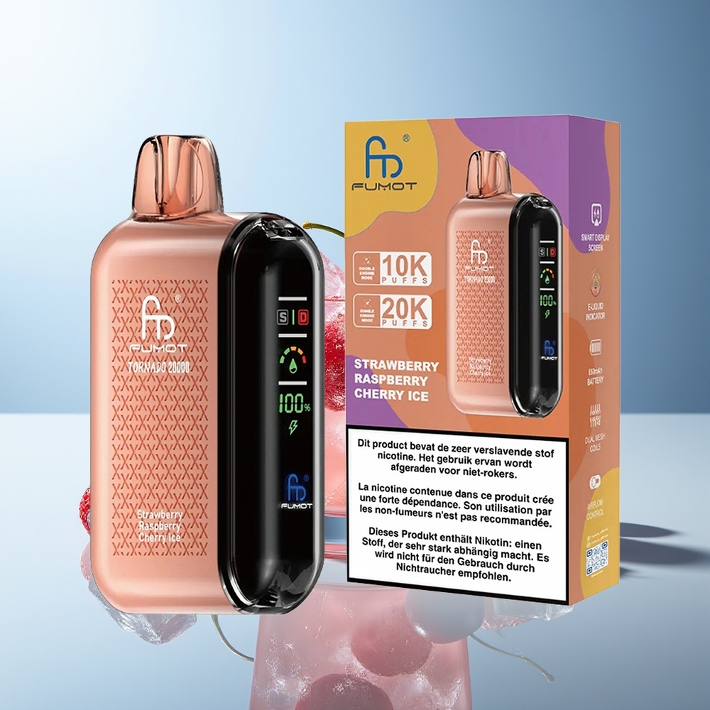Fumot Tornado 20000 Puffs Disposable Vape Strawberry Raspberry Cherry Ice